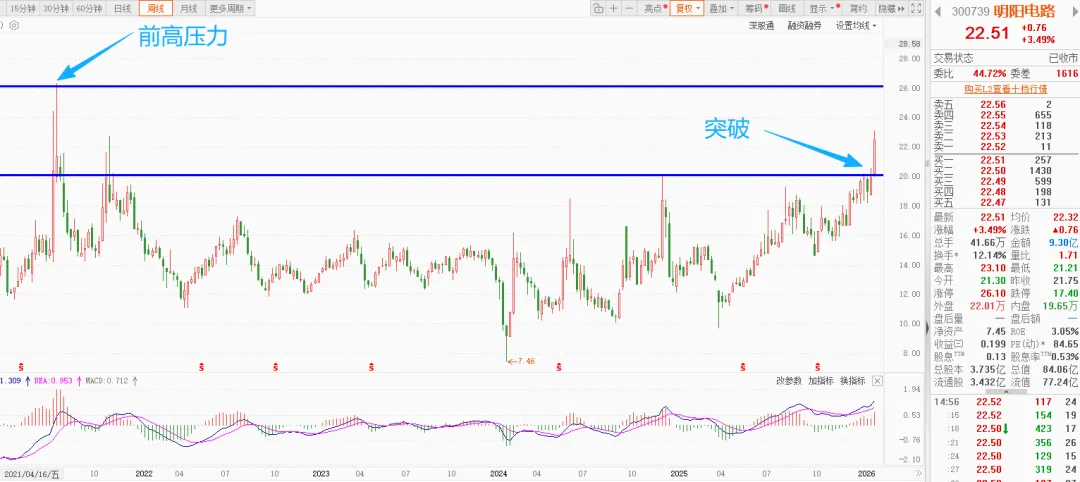 这个票,热度很高,基本面其实目前是不够看的,但未来不好说。看到上方蓝线26.1。