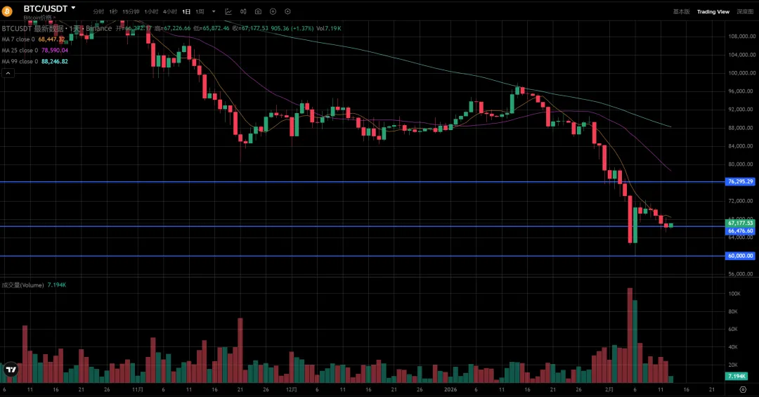 短期继续看67000这个位置,有效跌破就会去60000附近寻找支撑。