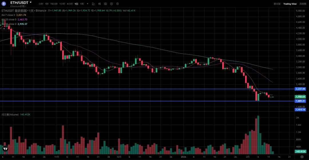 昨日分析:ETH暂时止跌,在2000附近震荡,短期看能否向上突破2100,如果向上有希望形成换挡结构。