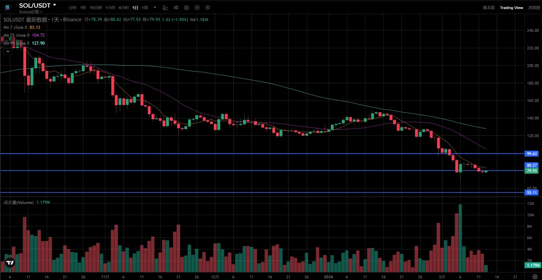 昨日分析:SOL也是勉强守住刹车位80,耐心等待有质量的k线。