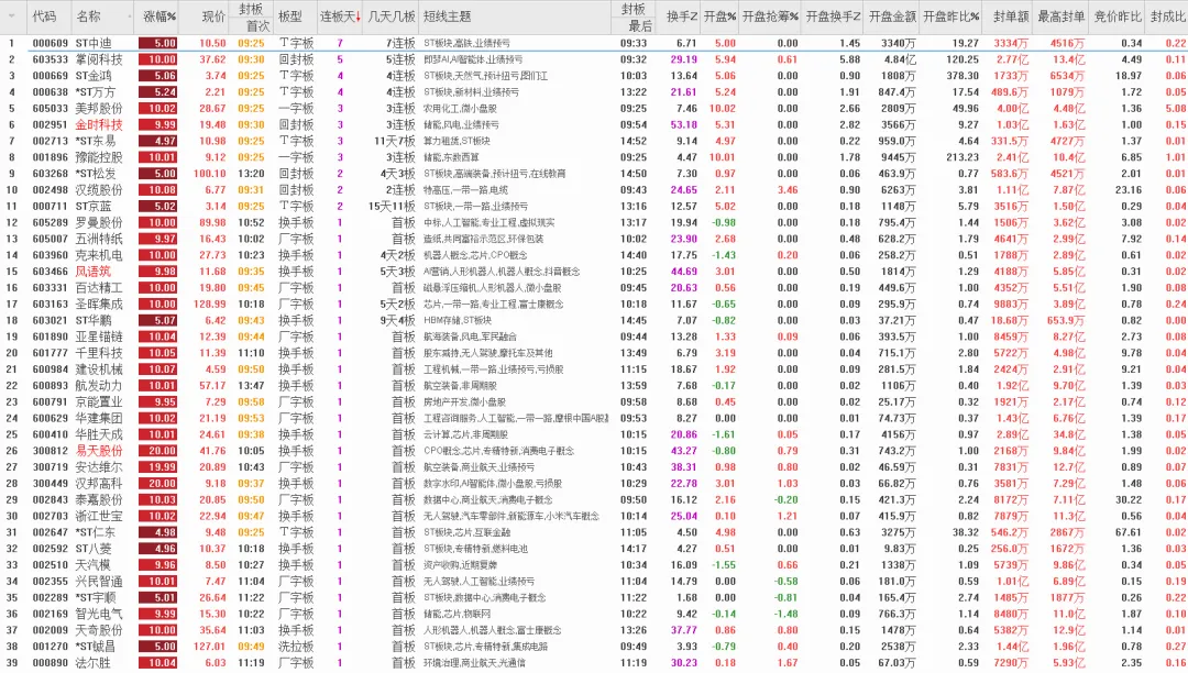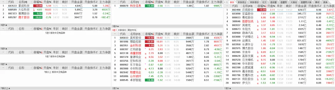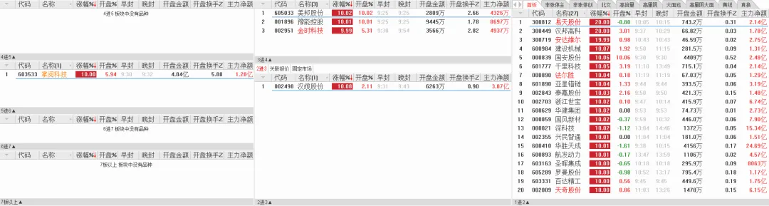 | 主板大周期4板横盘,小周期4板降至3板,双创板大小周期同步1板横盘。上涨比率28.94%,大肉38家,大面21家。 |