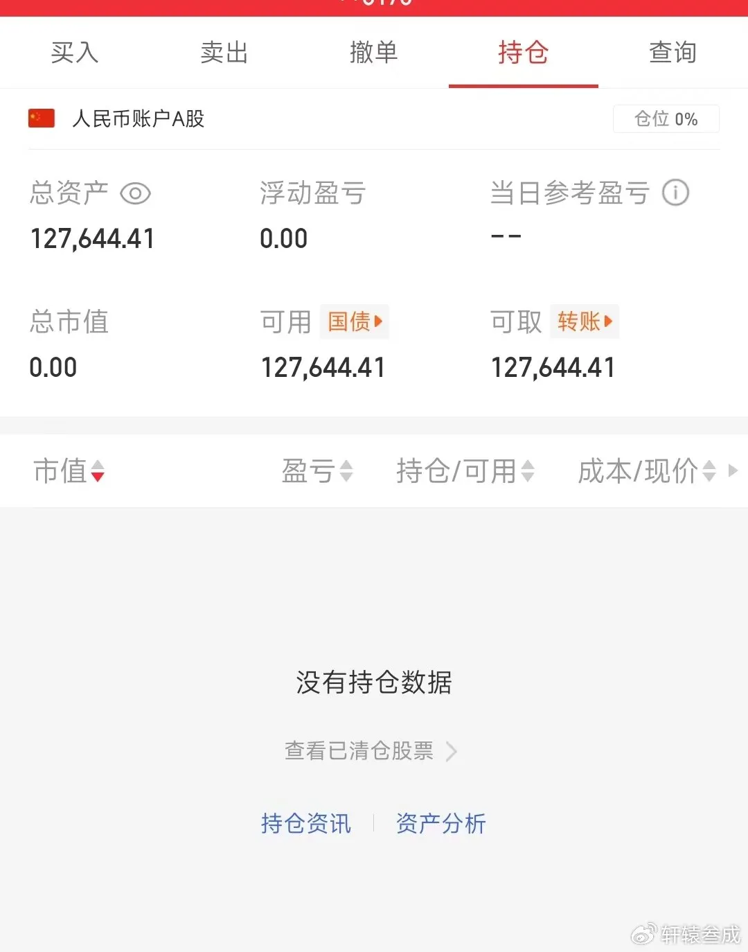 实盘账户今天继续空仓。