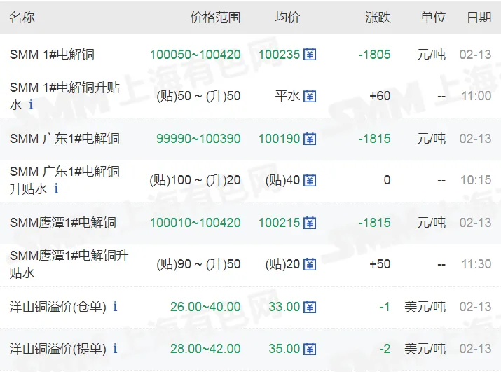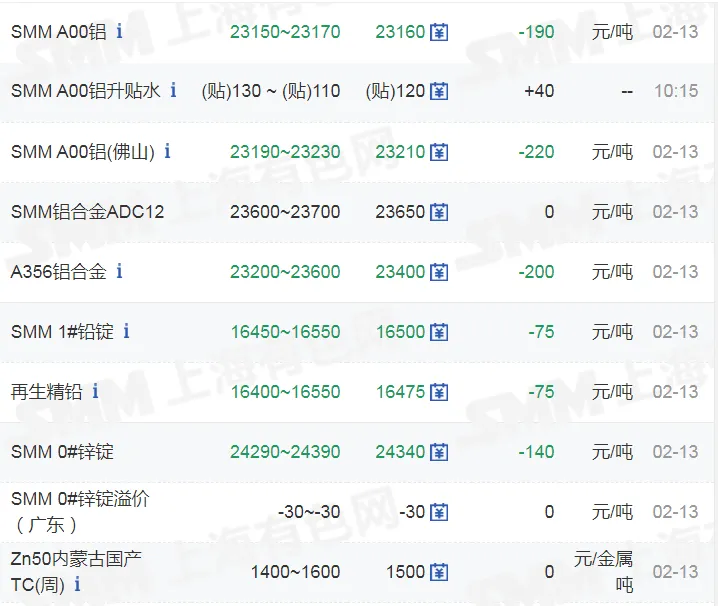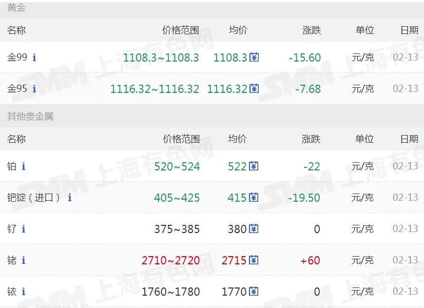 >20260213金银铜铝价格行情