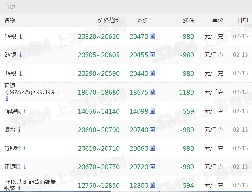 今日银价行情,今日银价最新价2026年2月13日