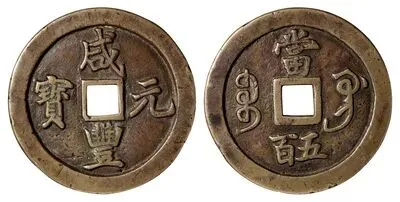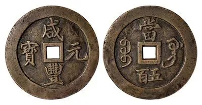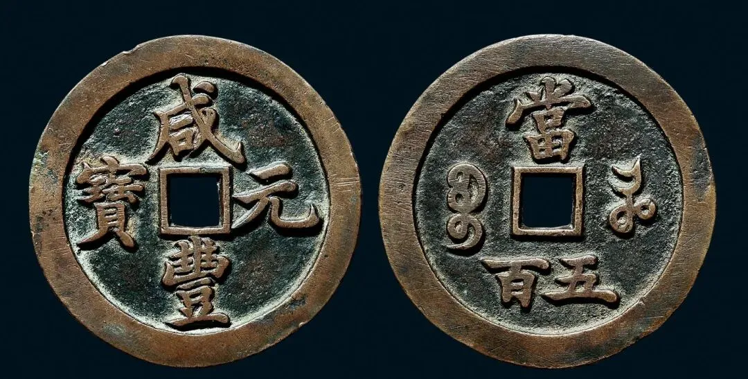 “咸丰元宝”背“宝河当五百”(直径:55.4mm)