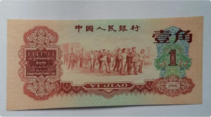 1960年的时候,壹角的购买力,按当年的金价来类比,大概相当于能换到零点零几克黄金,够买上几个馒头,或者坐几趟公交车。