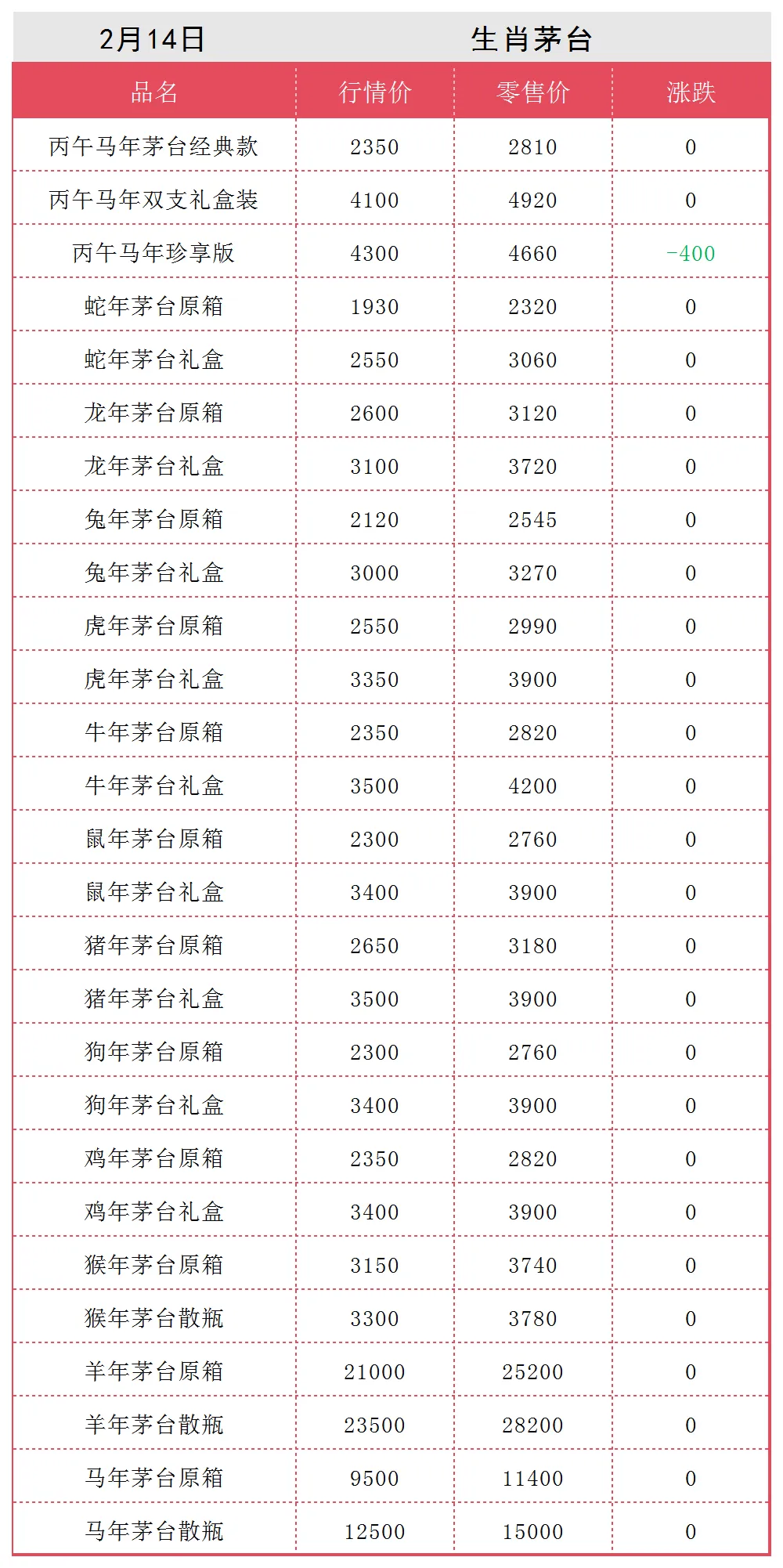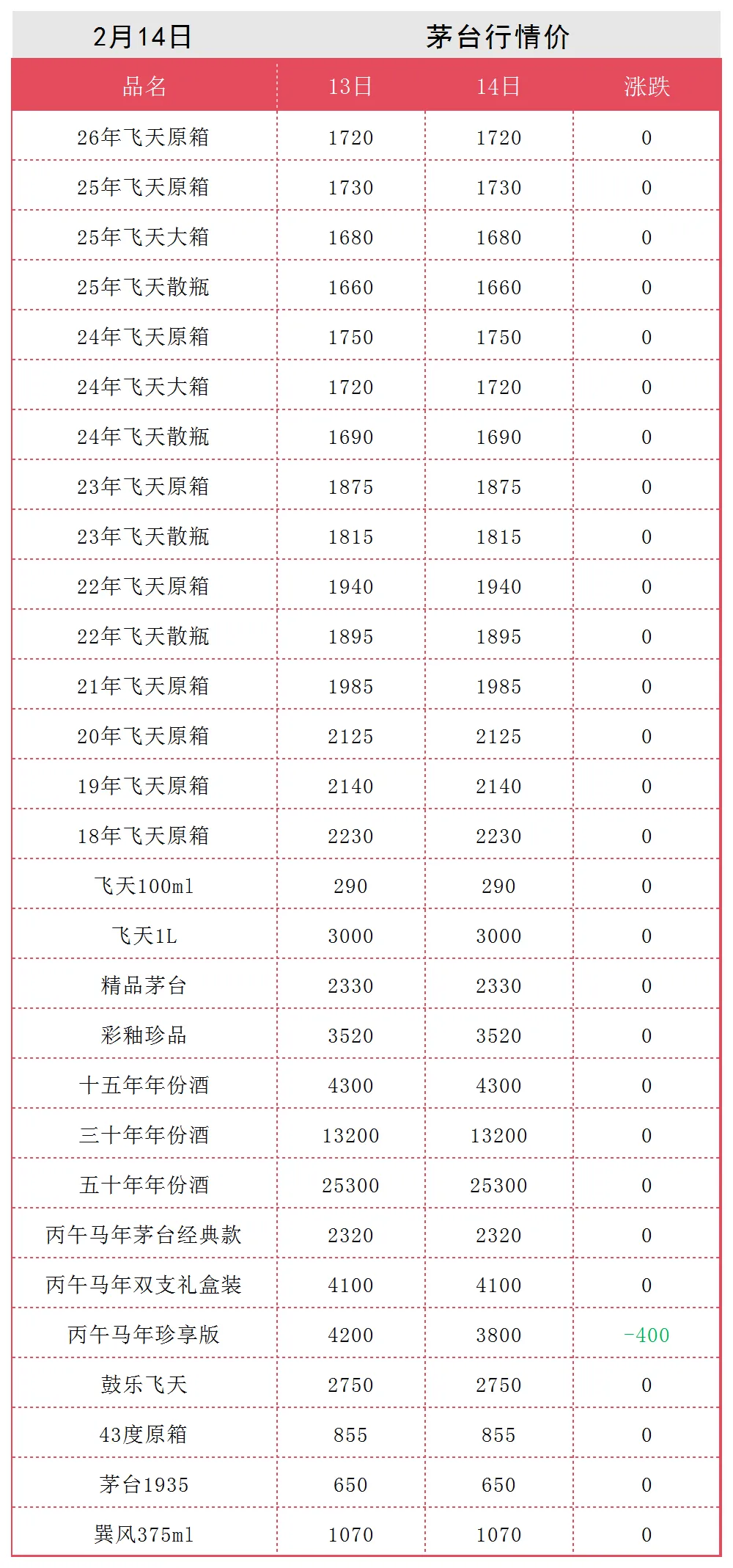 2月14日各大品牌白酒市场拿货、批发行情价,已更新