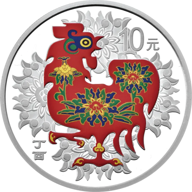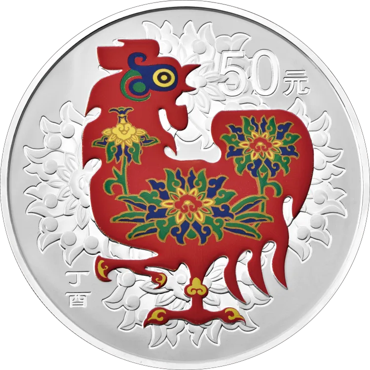 2017鸡年150克圆形彩色银币,发行量30000,初始发售价3030,最新成交价4480,成交时间2026.2.6