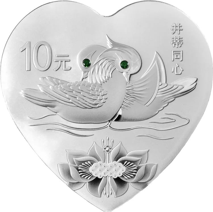 2017年吉祥文化30克心形银币并蒂同心,发行量60000,初始发售价500,最新成交价880,成交时间2026.2.12