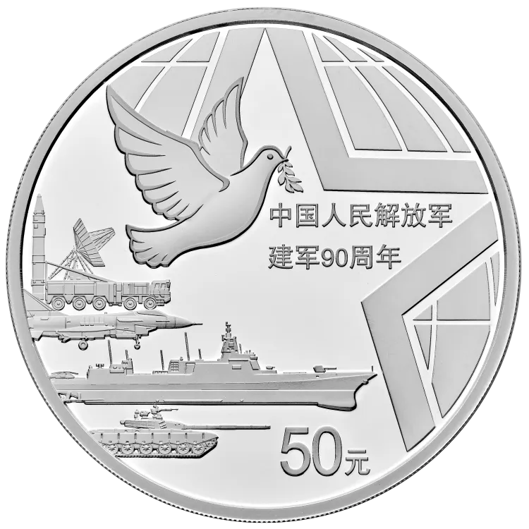 中国人民解放军建军90周年150克银币,发行量9000,初始发售价3050,最新成交价3720,成交时间2026.1.16