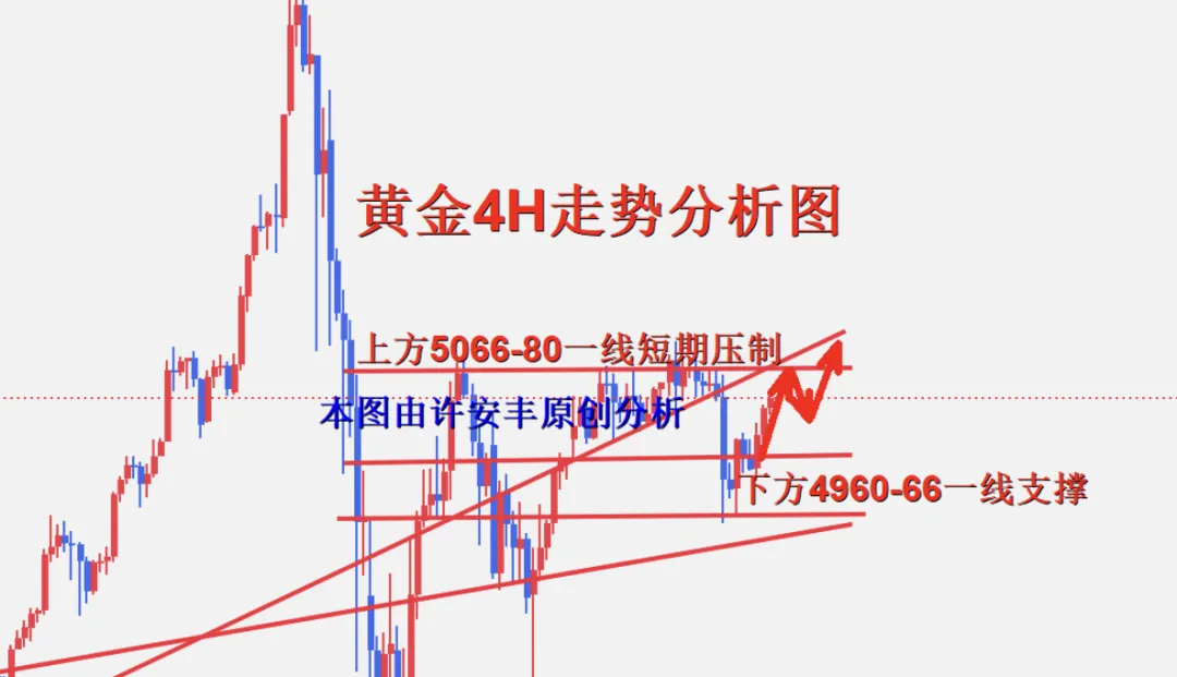 从4小时行情走势来看,上方关注5066-5080一线短期压制,下方关注4960-4966一线支撑情况,操作上继续以区间操作进行,以稳健操作为主,具体操作策略我会在盘中提示,及时关注。