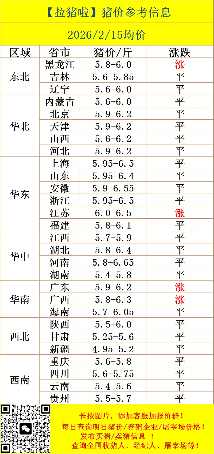【拉猪啦】2.15-猪价行情与买卖猪信息!(交易清淡!)
