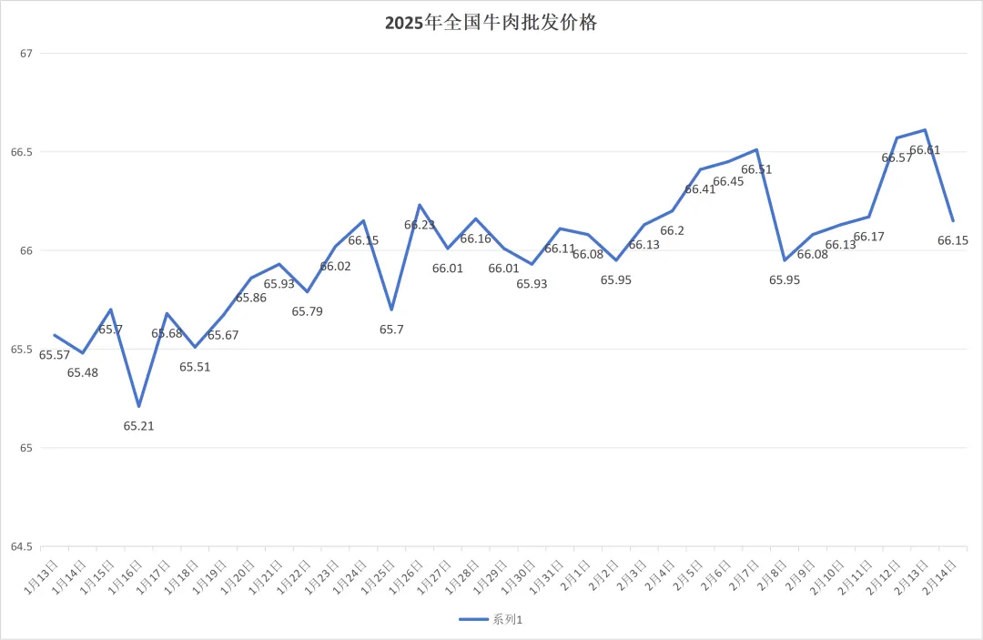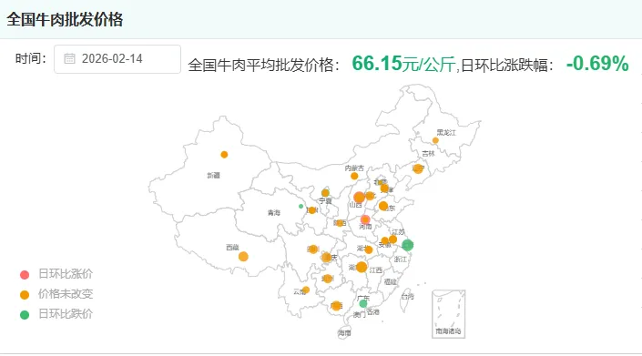 全国牛肉平均价格:66.15元/公斤