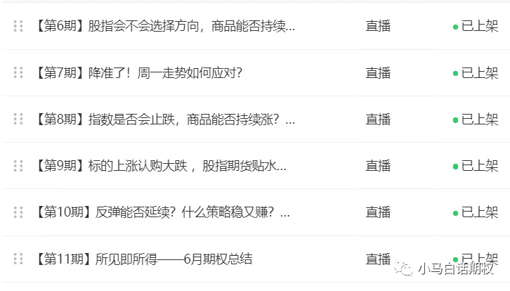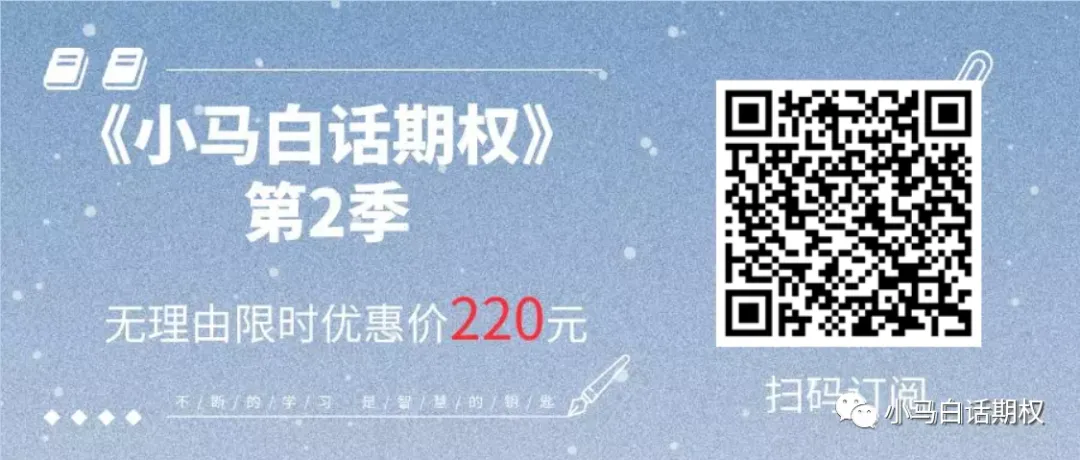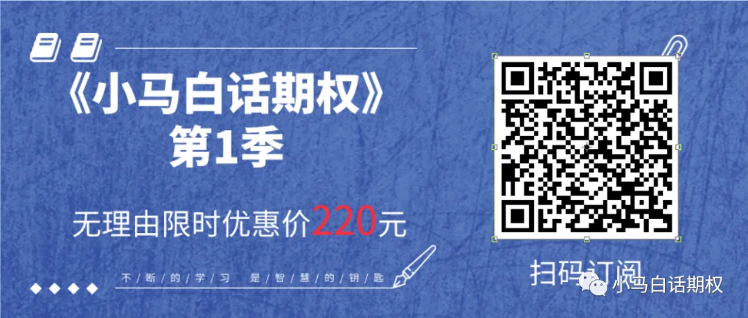 《小马白话期权》系列不是一个简单的视频课程,而是一档期权节目,每周结合行情与实战经验更新,大家看书看公众号内容看累了,或者想换一种学习方式,皆可订阅,来听我分析期权市场行情和近期策略!
