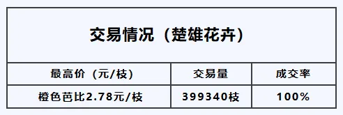 14日,姚安花拍中心全渠道交易总量约为488010枝,今日交易量较前一交易减少,总体购买力基本下跌。成交率下滑,交易情况如下: