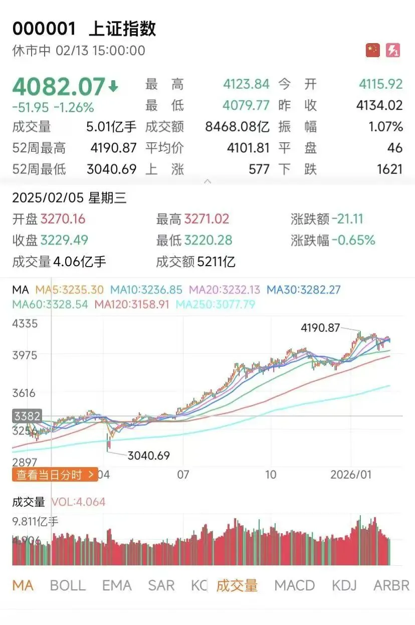 ◦ 上证指数:+25.58%,收盘4082点