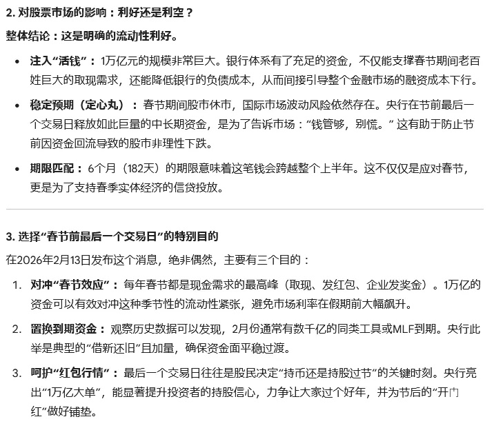 我对宏观经济并不懂,于是去问了问 Gemini。AI 的判断也偏向利好,分析得头头是道,让我更增加了“第二天大概率会有红包行情”的预期。