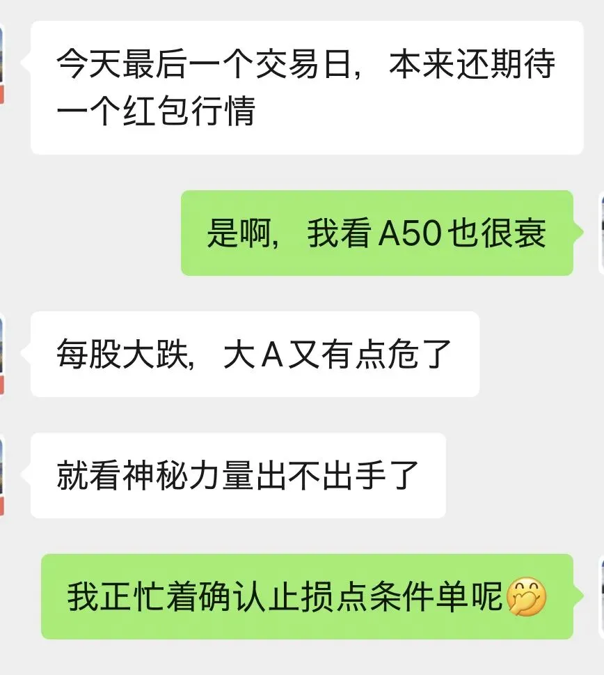 第二天开盘前,得益于这几年在股市的摸爬滚打,我先看了看 A50 期指的表现——几乎对这则消息毫无反应,甚至微微下跌。那一刻我意识到情况不妙,赶紧重新确认了自己的止损条件单,避免在极端的波动里被误伤。