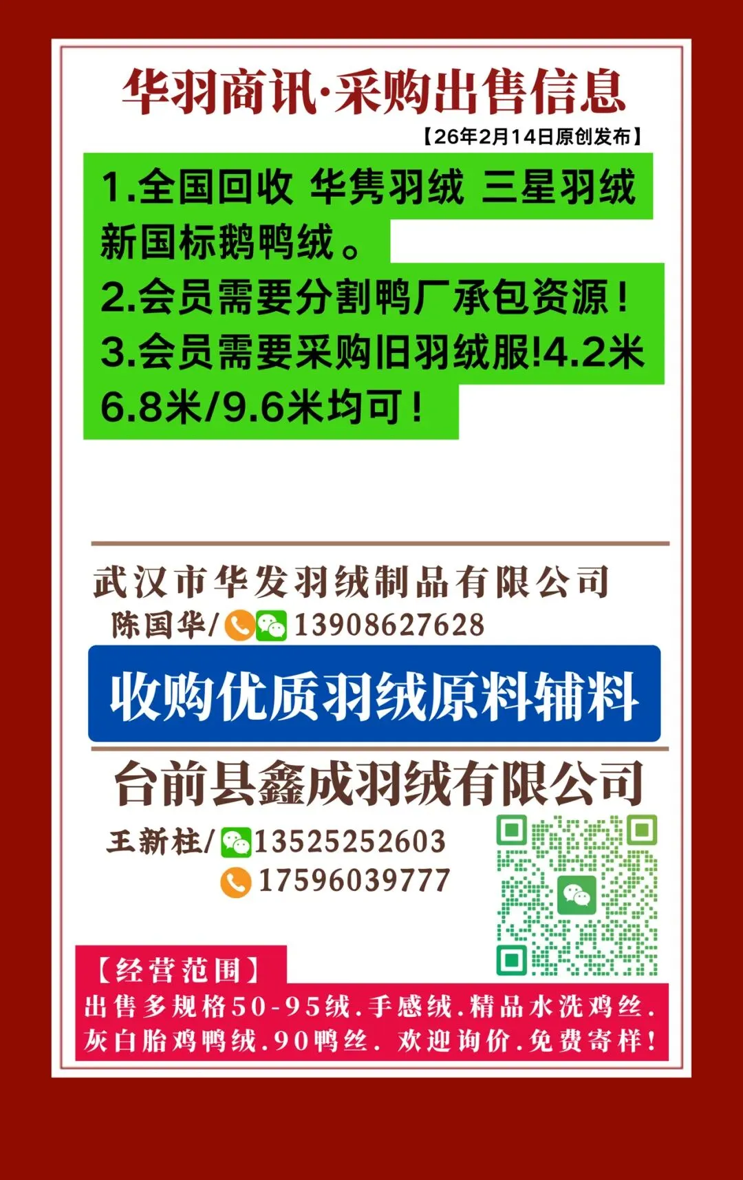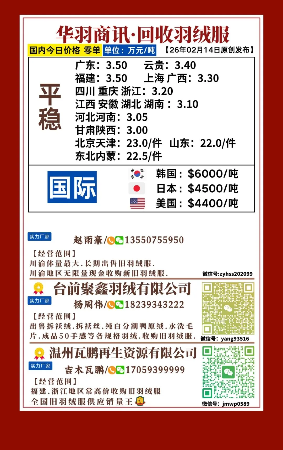 340期 | 全国再生羽绒行情20260214发布