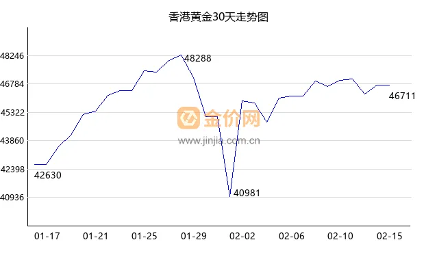 今日香港黄金上涨,现价46711 港币/两,今日开盘价45794,最高价46837,最低价45352。