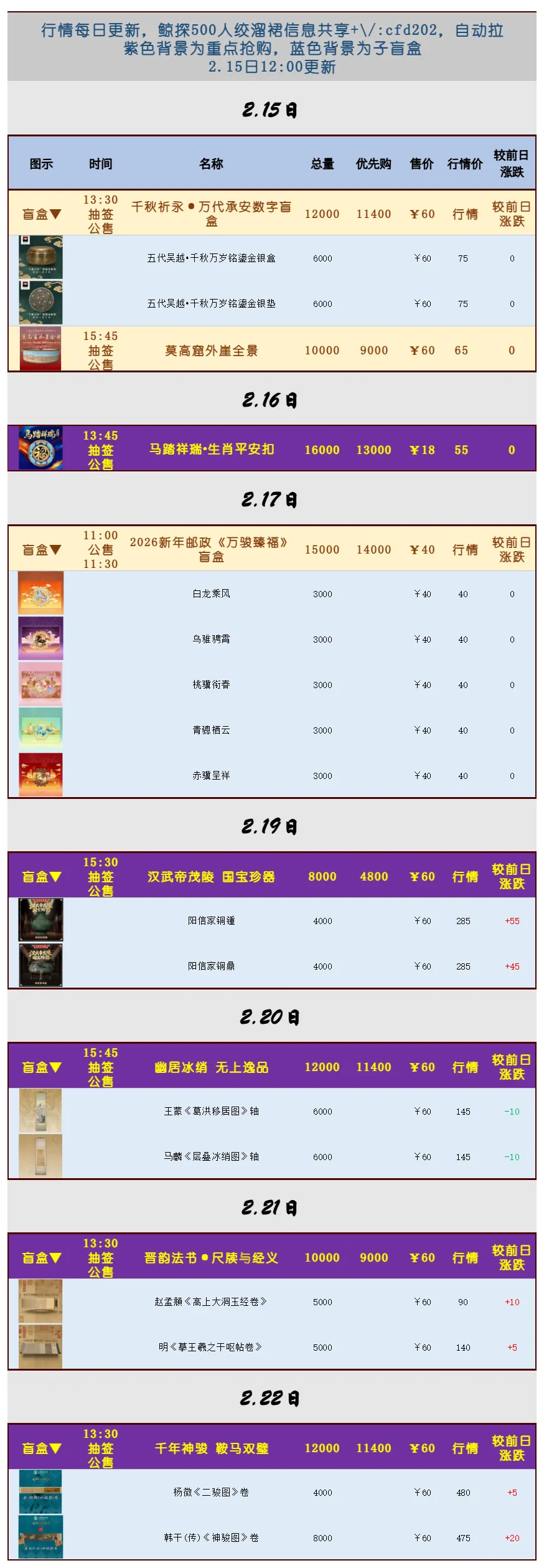蓝色背景为子盲盒,紫色背景为重点抢购。