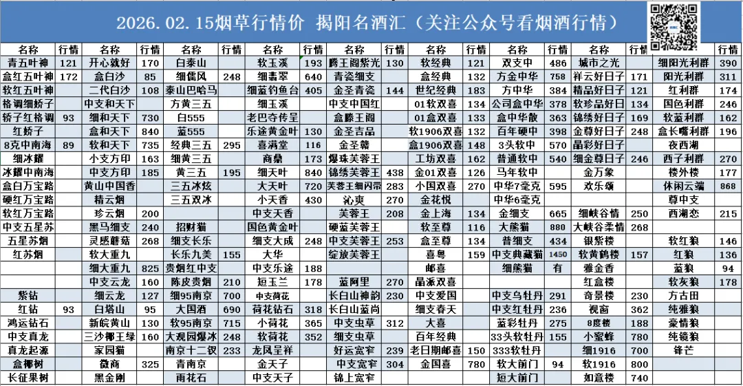 酒价日记|2月15日名酒行情:茅台、马茅经典版上涨,鼓乐飞天连续下跌
