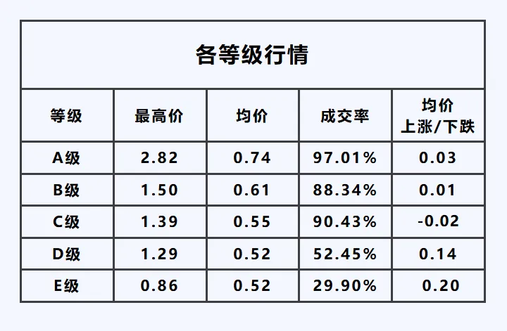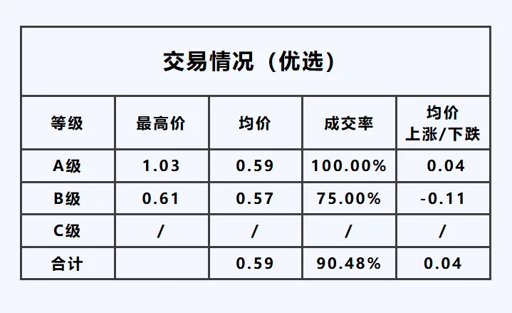 C级——最高价1.39元/枝,均价较昨日,下跌0.02元/枝。