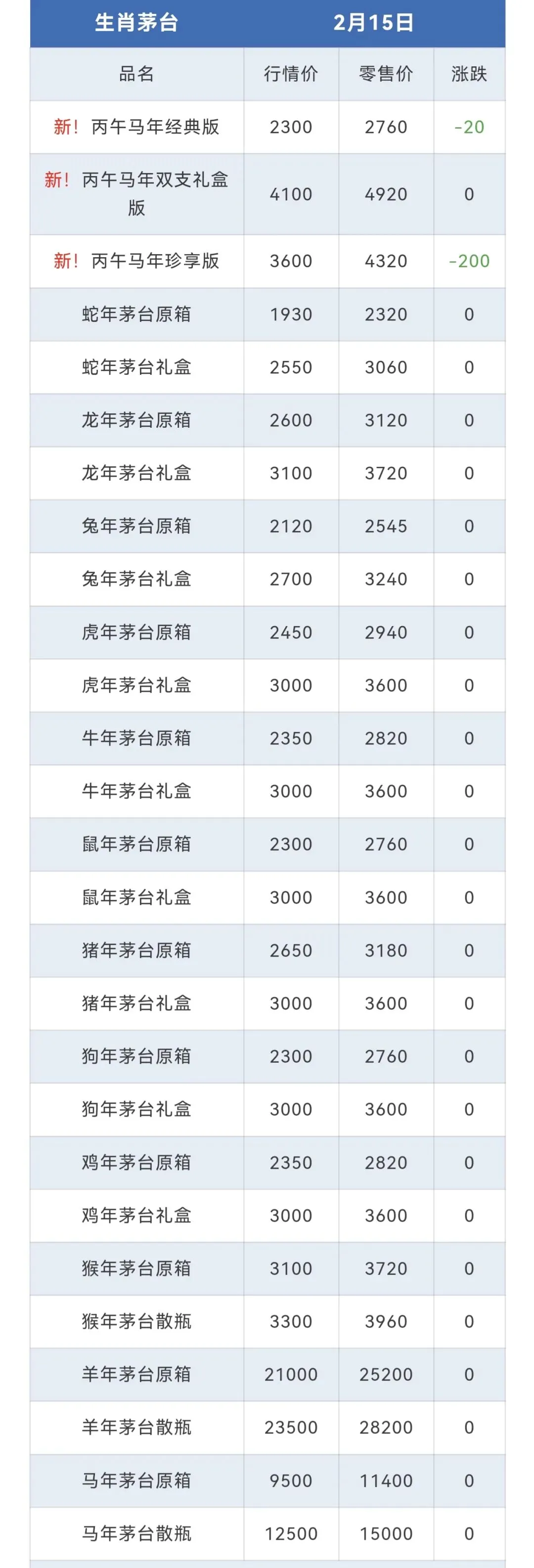 ※行情价:酒商调货价,不考虑物流运输人工成本,每个地区调货价有几十块浮动属正常现象。