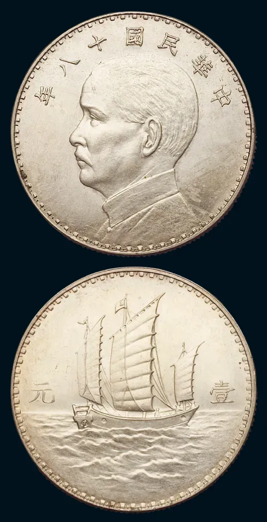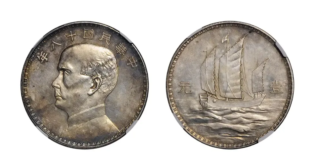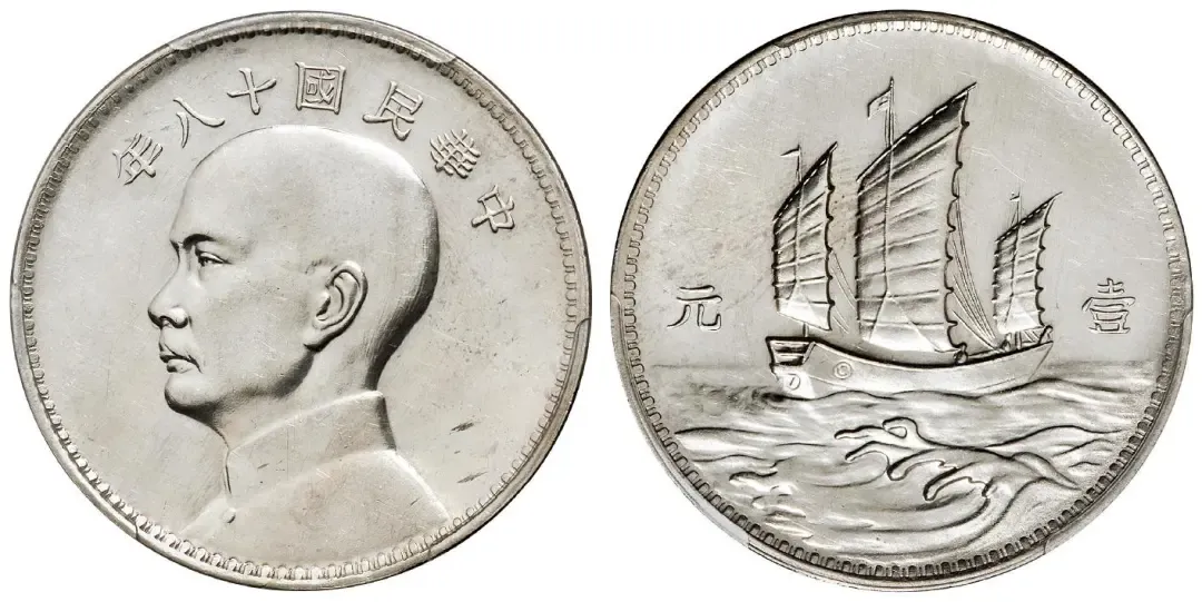 民国十八年英国版孙中山像背三帆船壹元银币样币