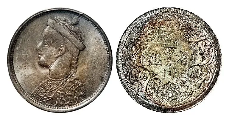 四川省造第一期光绪像无领直花版一卢比银币