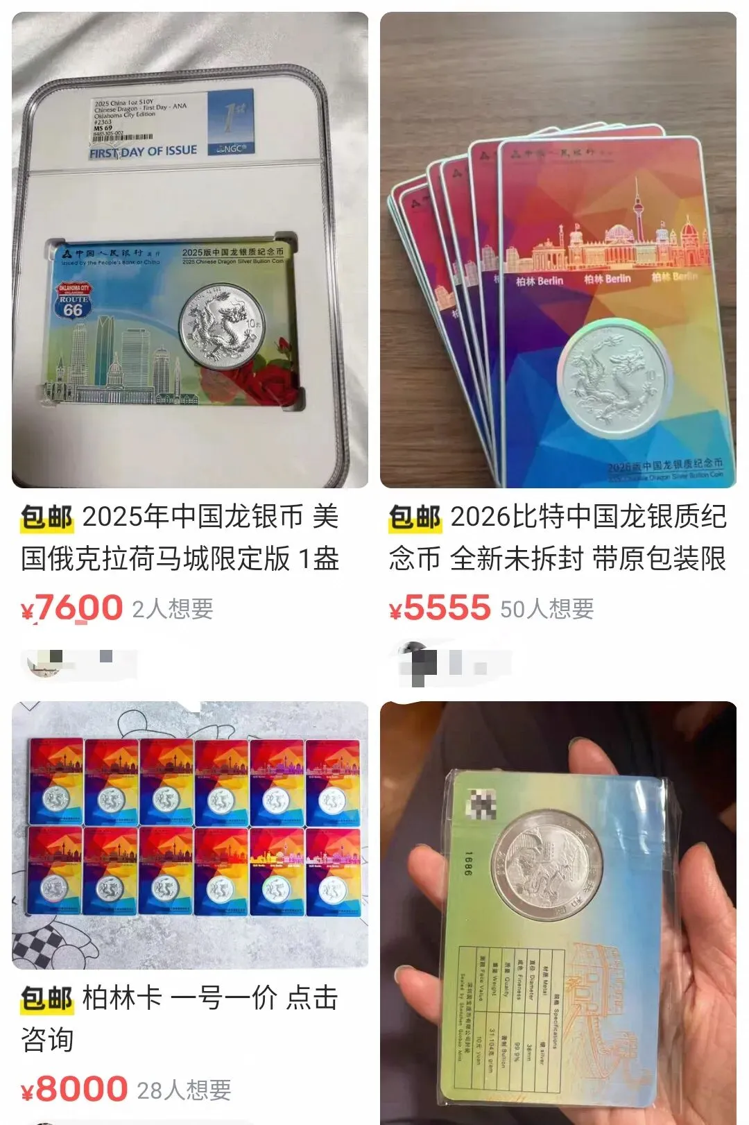 2026版中国龙银币德国柏林城市卡,这两天市场行情也出现了比较大幅度的下跌,记得在前段时间,2026版中国龙银币德国柏林卡市场行情基本上在8000以上,但是这两天看了一下,目前海鲜市场上最低也已经到了5500多元的价格。