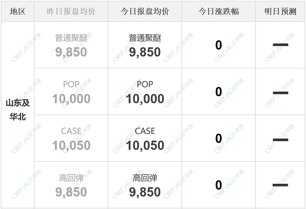 原料PO市场今日盘整运行。供应方面,厂商按需排产,库存承压。下游方面,终端客户跟进一般,整体采购心态偏谨慎,交投多为刚需采购。短期仍需关注PO运行情况及下游需求情况,预计市场区间维稳。