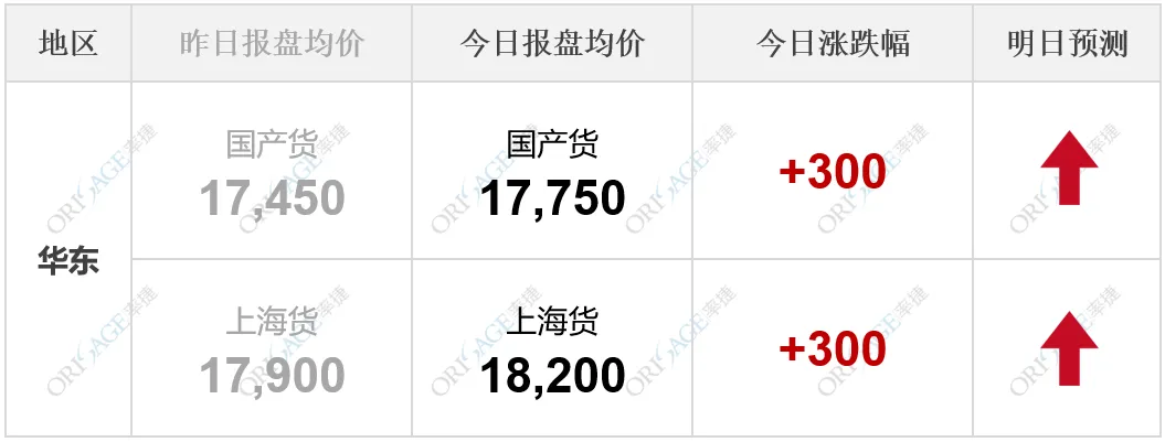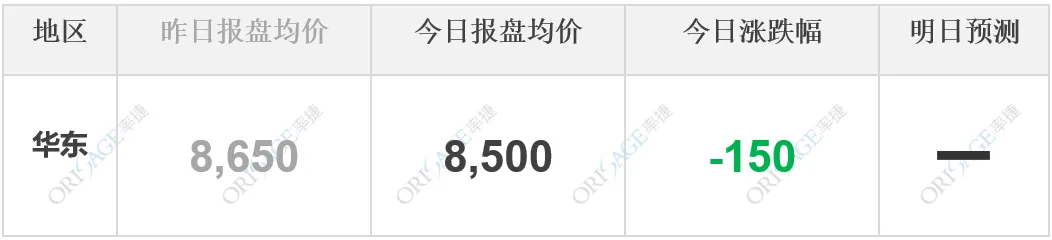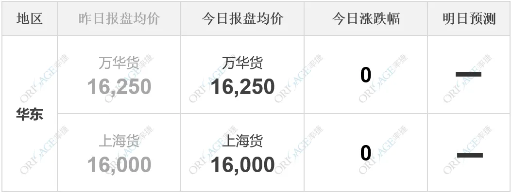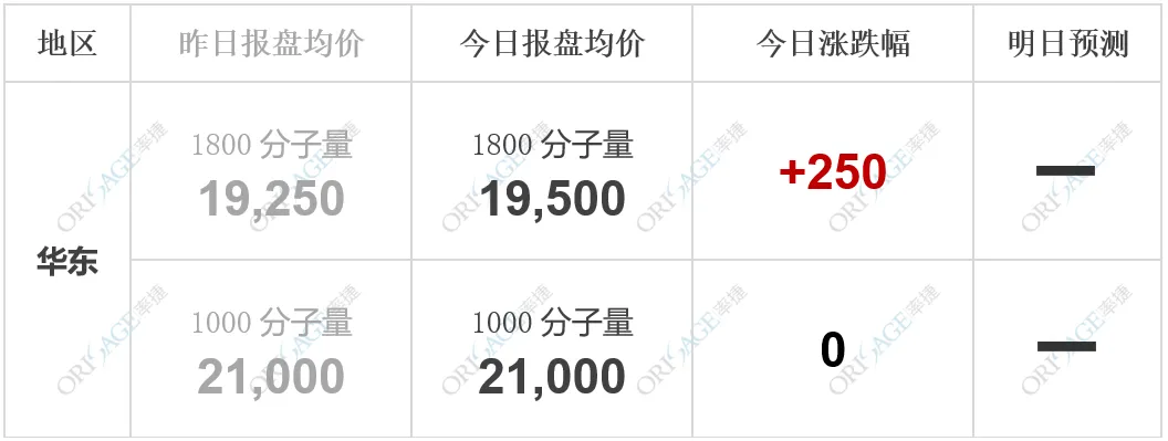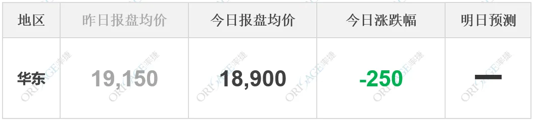 截至目前,华东地区市场价格主流价格在19,000-19,300元/吨,华南地区主流价格19,000-19,300元/吨。