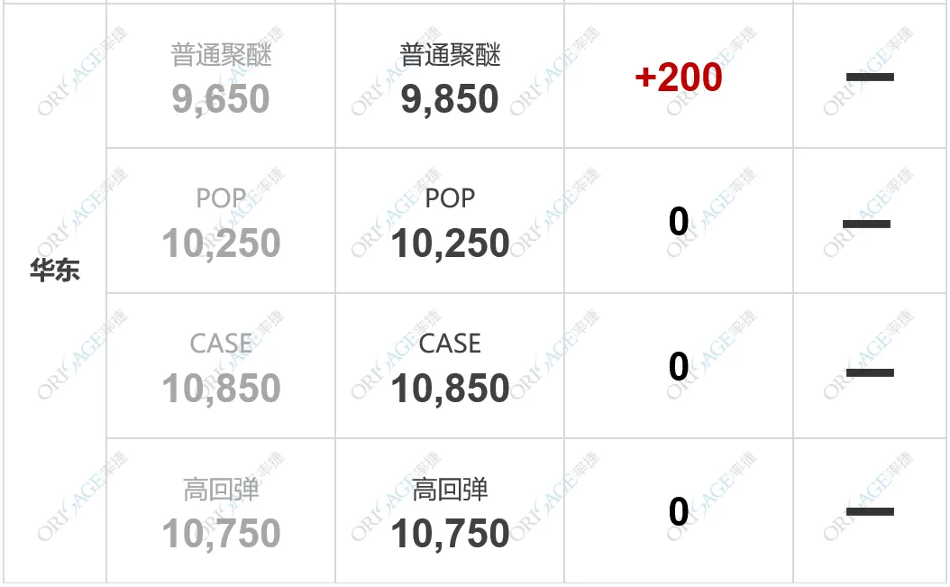 原料PO市场重心止跌回涨。供应方面,装置正常运行,厂商按需排产,实际成交氛围回暖。下游方面,询盘积极性有所改善,但是大部分用户仍持观望态度,新单跟进缓慢。