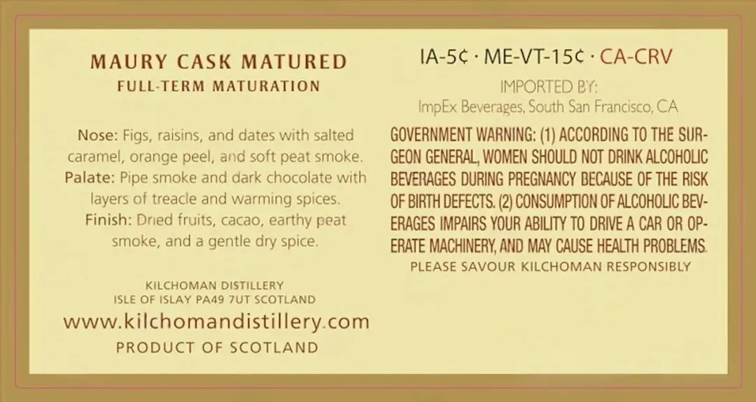 齐侯门莫里桶限量版(Kilchoman Maury Cask Matured Limited Edition),全新官方酒标流出。