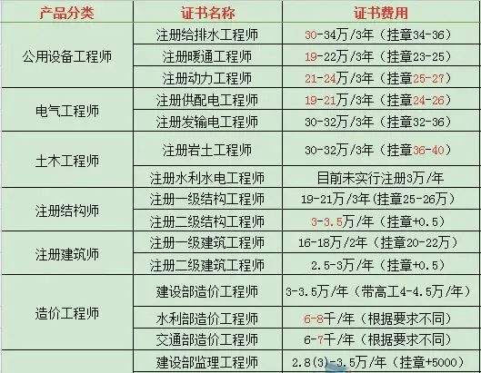从市场反馈看,不同类别证书的挂靠费用差异显著,部分技术类证书曾因稀缺性推高价格,但近年随持证人数增加,费用已明显回落。据行业统计,目前挂靠费用较高的证书包括: