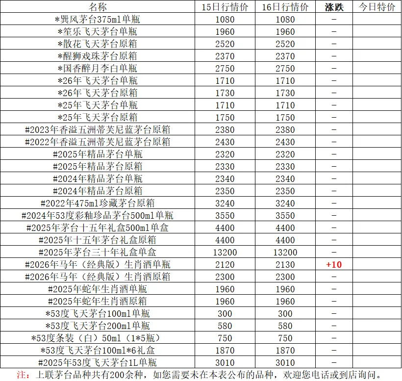 6.因茅台供销两旺,在一日之中偶有浮动属正常情况,本表仅作参考