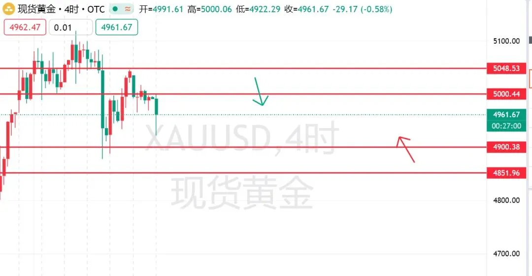 入场:4920-4930(企稳),止损:4900 下方,止盈:4990-5000;