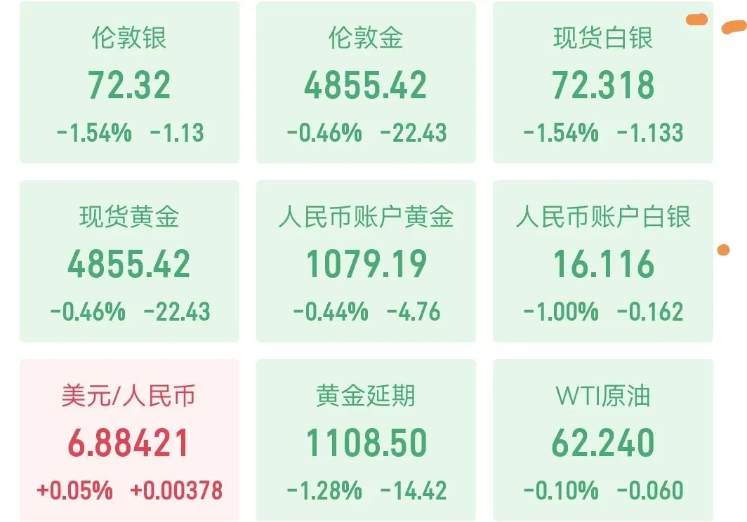 伦敦金现:4859.46美元/盎司,日内-129.77美元,-2.60%,短期金价延续震荡偏弱格局,美元与美债收益率持续施压,市场情绪偏谨慎。