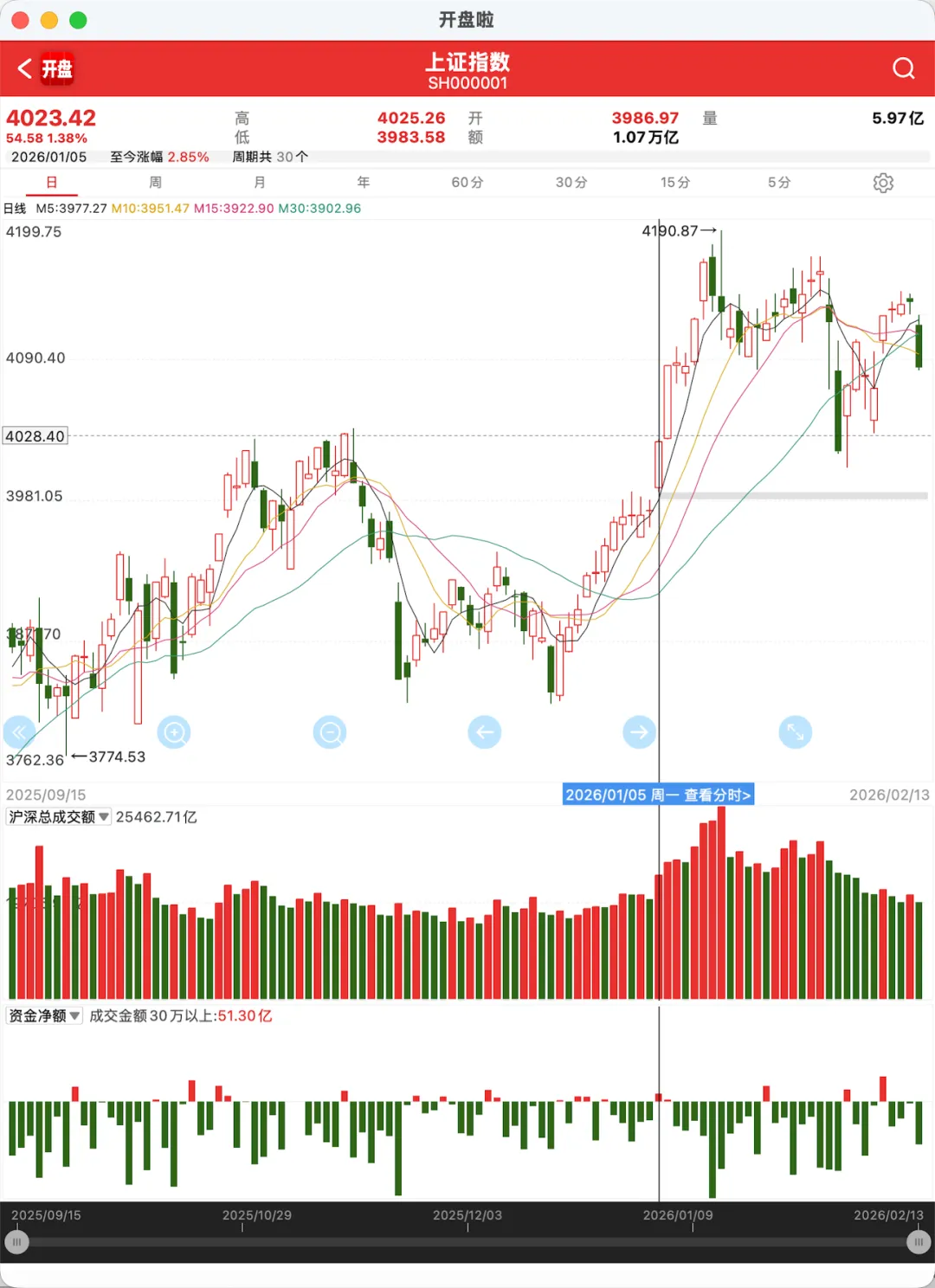 量能:这段时间市场量能再次放量至2万亿以上,巅峰期曾接近4万亿。10、1月中下旬(约13个交易日):震荡