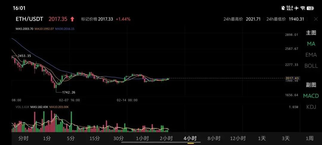 - 24h区间:最高价2021.71 USDT,最低价1940.31 USDT,振幅约 4.1%