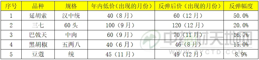 正常情况下,延胡索行情应持续在低位震荡,生产进行调整消化库存,年底价格的过早回升,对未来可能不是一件好事。