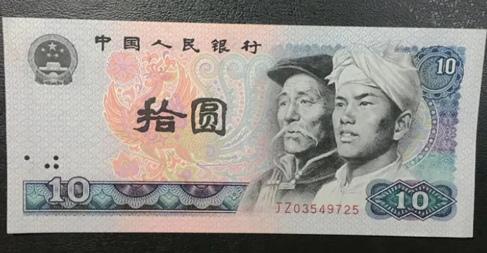 那些在1980年代、1990年代出生的人,对这张深蓝色的十元纸币应该有比较深的印象,因为它是童年记忆中最常见的纸币之一,是父母发工资时带回家的那种钱,是用来买学习用品、交学费的那种钱。