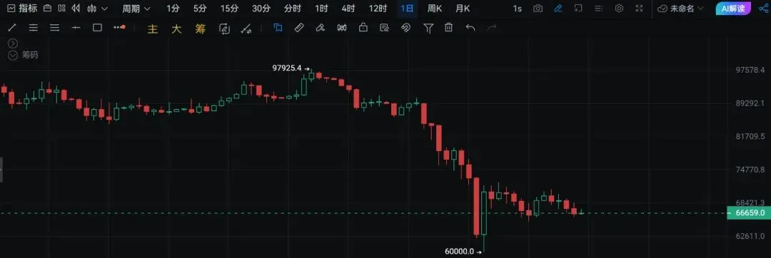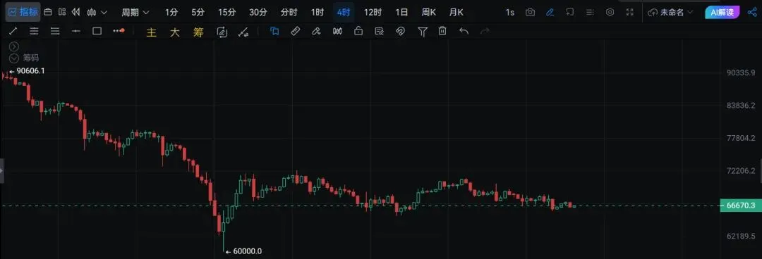 午盘时段价格再度转弱延续下行节奏,以太坊从1990关口回落至1940附近,回调幅度超50点,比特币则由67300一线回撤至66300区域,调整幅度近千点,全天走势呈现先跌后反弹再回踩的震荡结构。