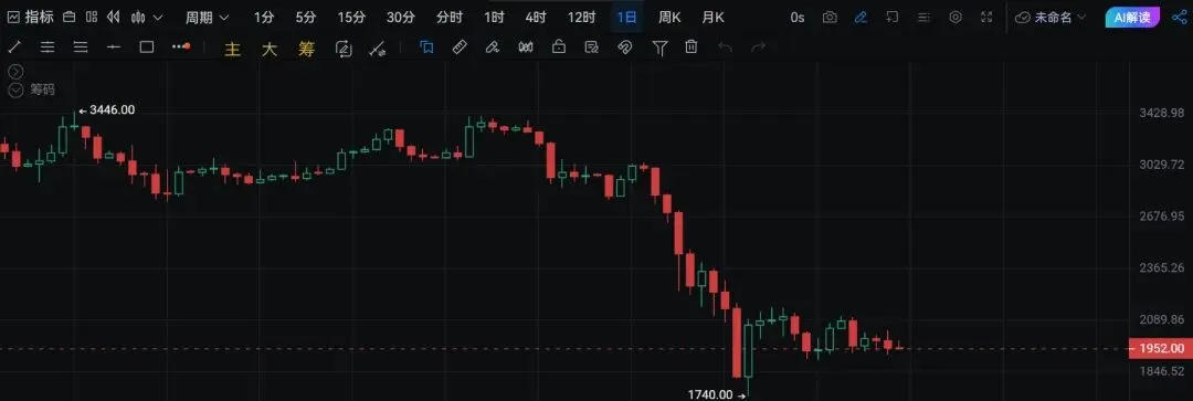 以太坊日线结构整体表现偏弱,趋势动能持续不足,2000整数关口已成为当前级别核心多空分水岭,该位置前期曾发挥关键支撑作用,跌破后经过多次反弹测试确认,已完成支撑阻力有效转换,近期多次试探均未能实现有效站稳与突破,承压信号明确,因此2000一线是现阶段最具确定性的强压区域,后续行情若反弹至此区间,可遵循顺势高空思路布局空头,风控防守位统一设置在2100上方,以结构突破作为趋势反转的确认条件。
