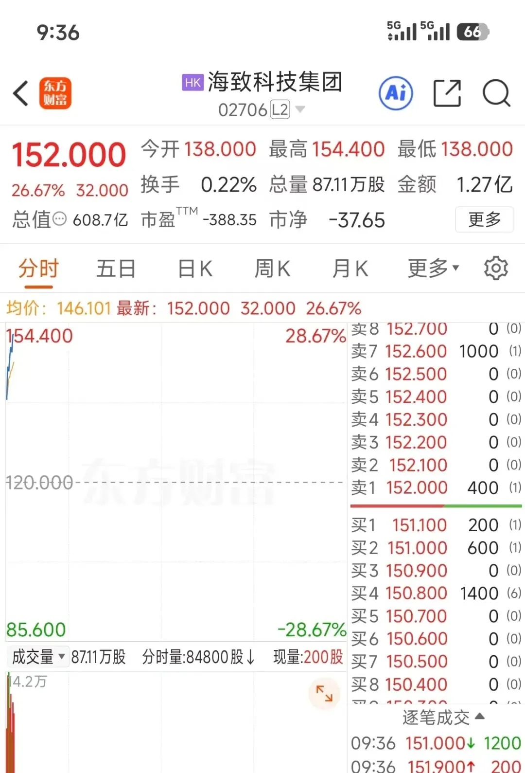 大早,看了一眼最近的AI除幻第一股,海致科技集团,竟然冲上了150,距离暗盘和第一天价格又上涨了60%多,楼主是暗盘90走的,当时已经觉得能收涨200%的收益已经是非常大的春节红包了,没想到,一山更有一山高,借此祝大家新年步步高升了。