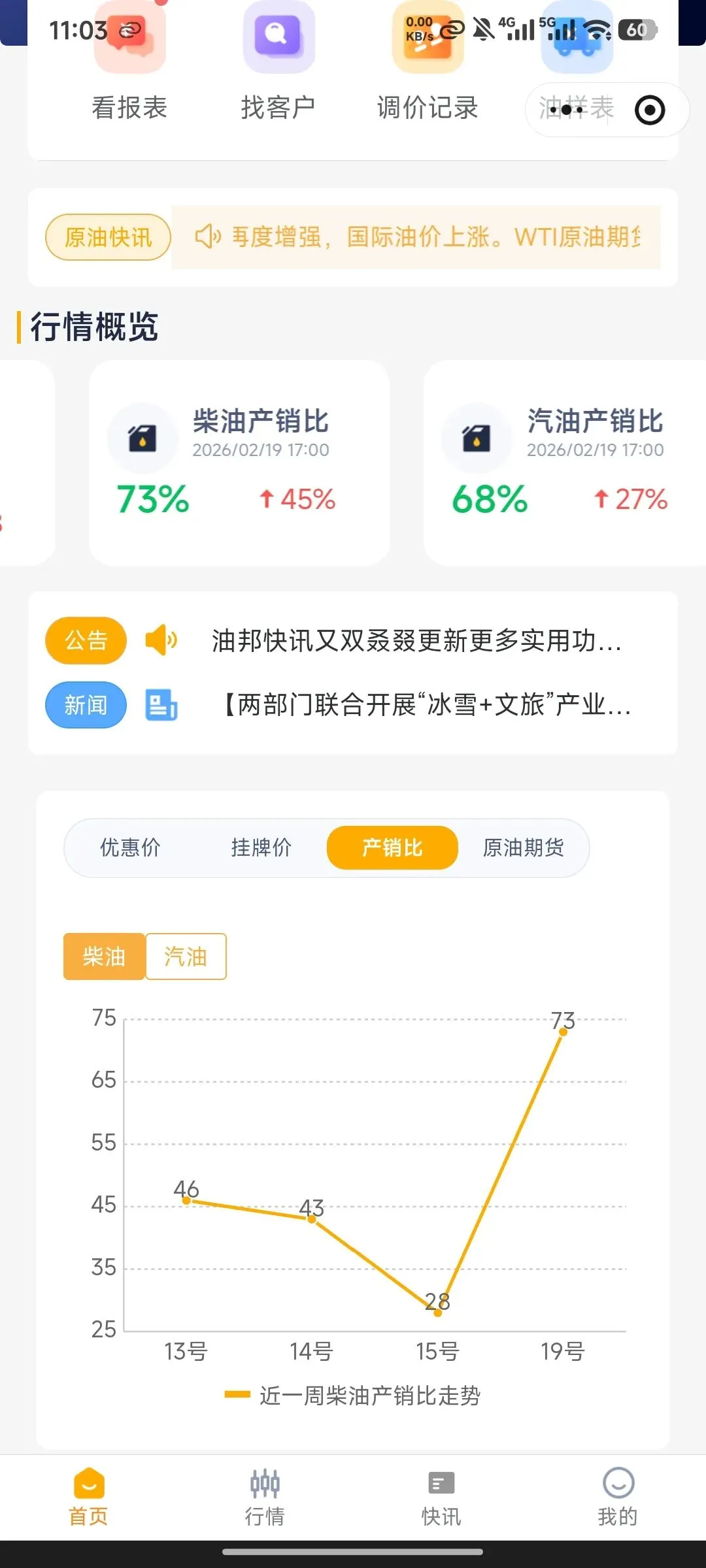 - 柴油产销比:73%,环比+45%