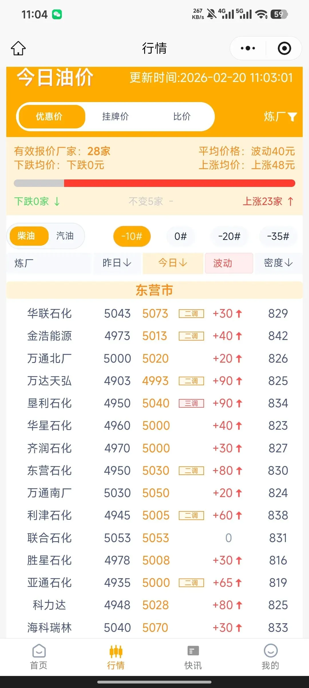 - 万通北厂:0# 5020(+20),-10# 5020(+20)