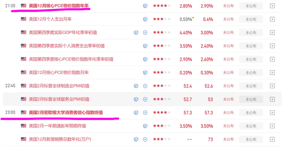 经济数据方面,市场关注的焦点集中在周五的一系列关键数据上面,包括核心个人消费支出(PCE)物价指数和美国第四季度国内生产总值(GDP)的初步估值。