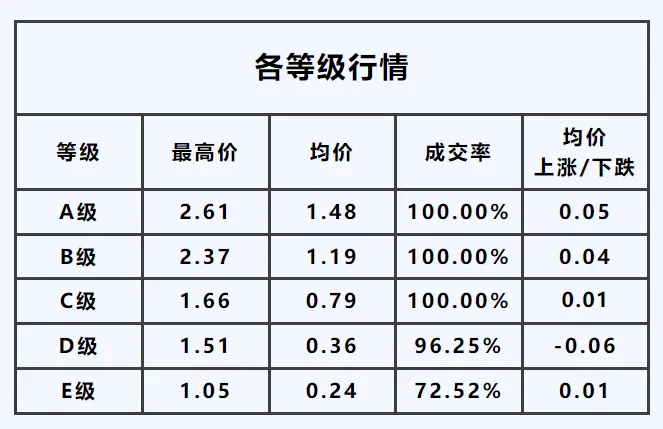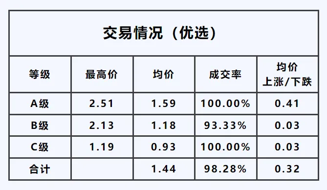 A级——最高价2.61元/枝,均价较昨日,上涨0.05元/枝;